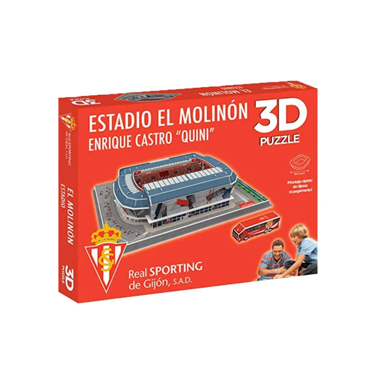 Construye la replica con alto nivel de detalle y gran calidad del estadio El Molinón, el templo de los aficionados del Sporting de Gijón. Para montarlo no necesitaras ni herramientas ni pegamento.